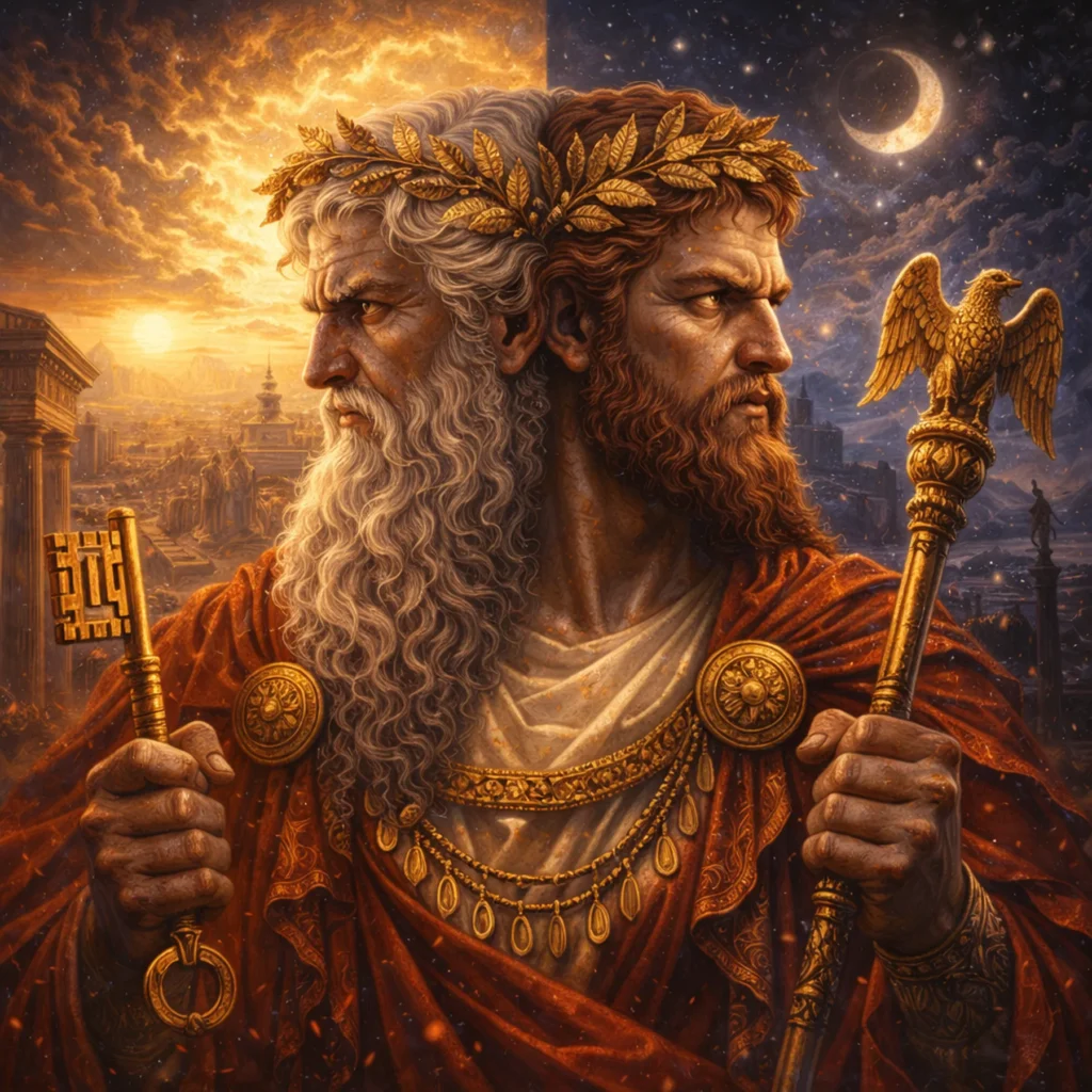 Jano actúa como marcador del umbral entre estados. Su función es: señalar el paso, sostener la simultaneidad, permitir el tránsito consciente, delimitar inicio y cierre.