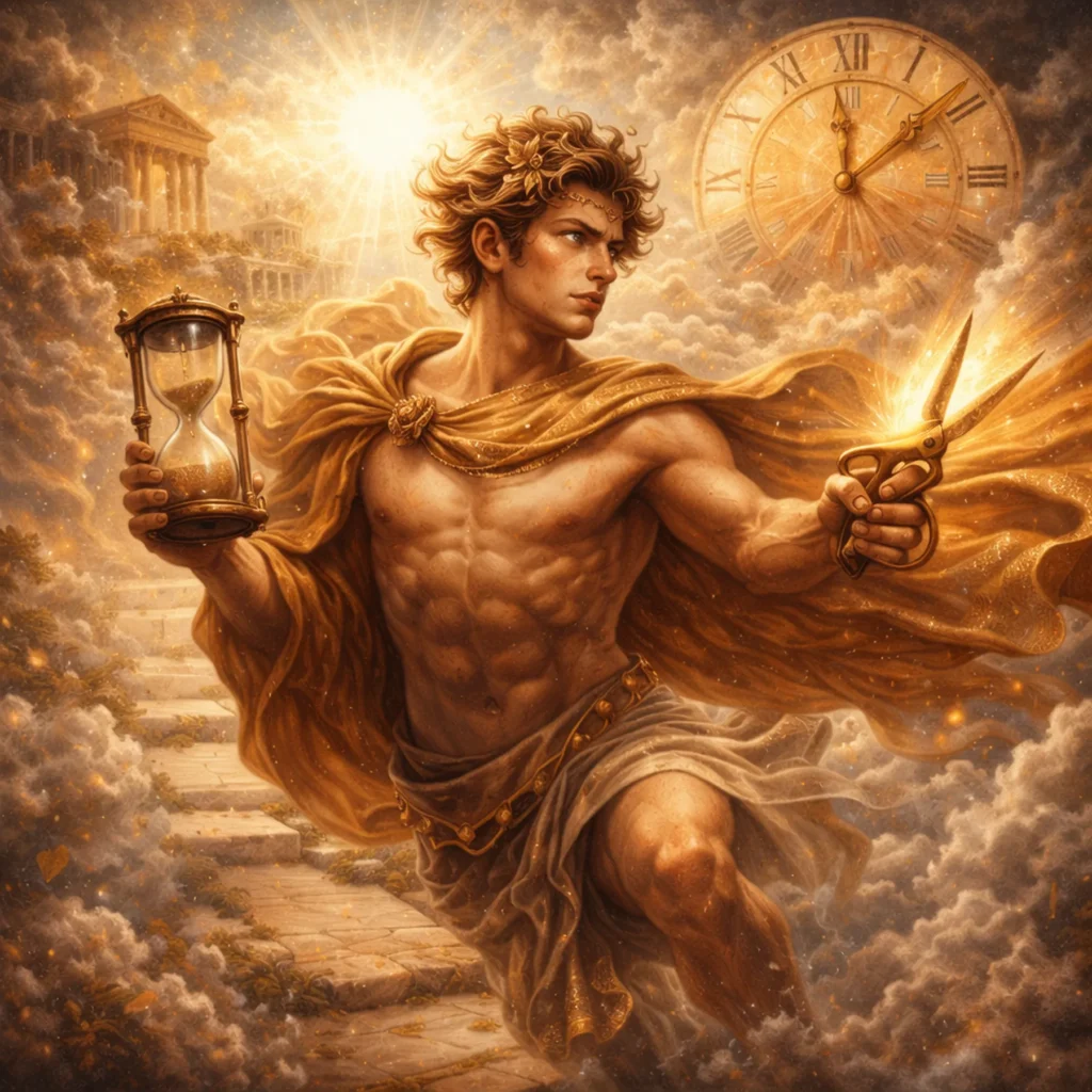 Kairós encarna el tiempo cualitativo: el momento exacto en el que una acción tiene sentido absoluto. No se puede forzar ni repetir. Aparece, abre una ventana… y desaparece. Es el instante donde todo converge: preparación interna, circunstancias externas y decisión. A diferencia del tiempo lineal (cronos), Kairós no mide duración, mide oportunidad. No espera a que estés listo: exige presencia total. Si dudas, lo pierdes. Si actúas, cambia el curso de los acontecimientos. Es un arquetipo extremadamente sutil: no grita, no empuja, no insiste. Se manifiesta como una intuición clara, una certeza breve, una sensación de “ahora o nunca”. Su poder no está en la duración, sino en la precisión.