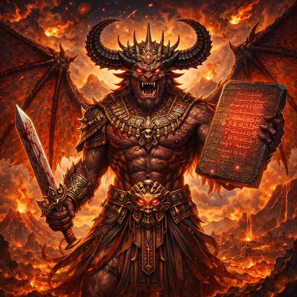Kingu encarna el arquetipo de quien recibe poder, autoridad o legitimidad… pero no la sostiene desde sí mismo. Su posición no nace de su esencia, sino de una designación externa (Tiamat). Esto genera una estructura inestable: poder sin raíz propia. Es un arquetipo profundamente ligado a la ilusión de autoridad. Mientras el sistema lo sostiene, parece legítimo. Pero en cuanto es puesto a prueba, se revela la falta de fundamento. Kingu no es débil en origen, pero su poder no está integrado, y por eso es vulnerable. También representa el momento en que alguien ocupa un lugar que no le corresponde del todo, o que aún no ha encarnado. Su caída no es casual: es la consecuencia de una estructura sostenida desde fuera.