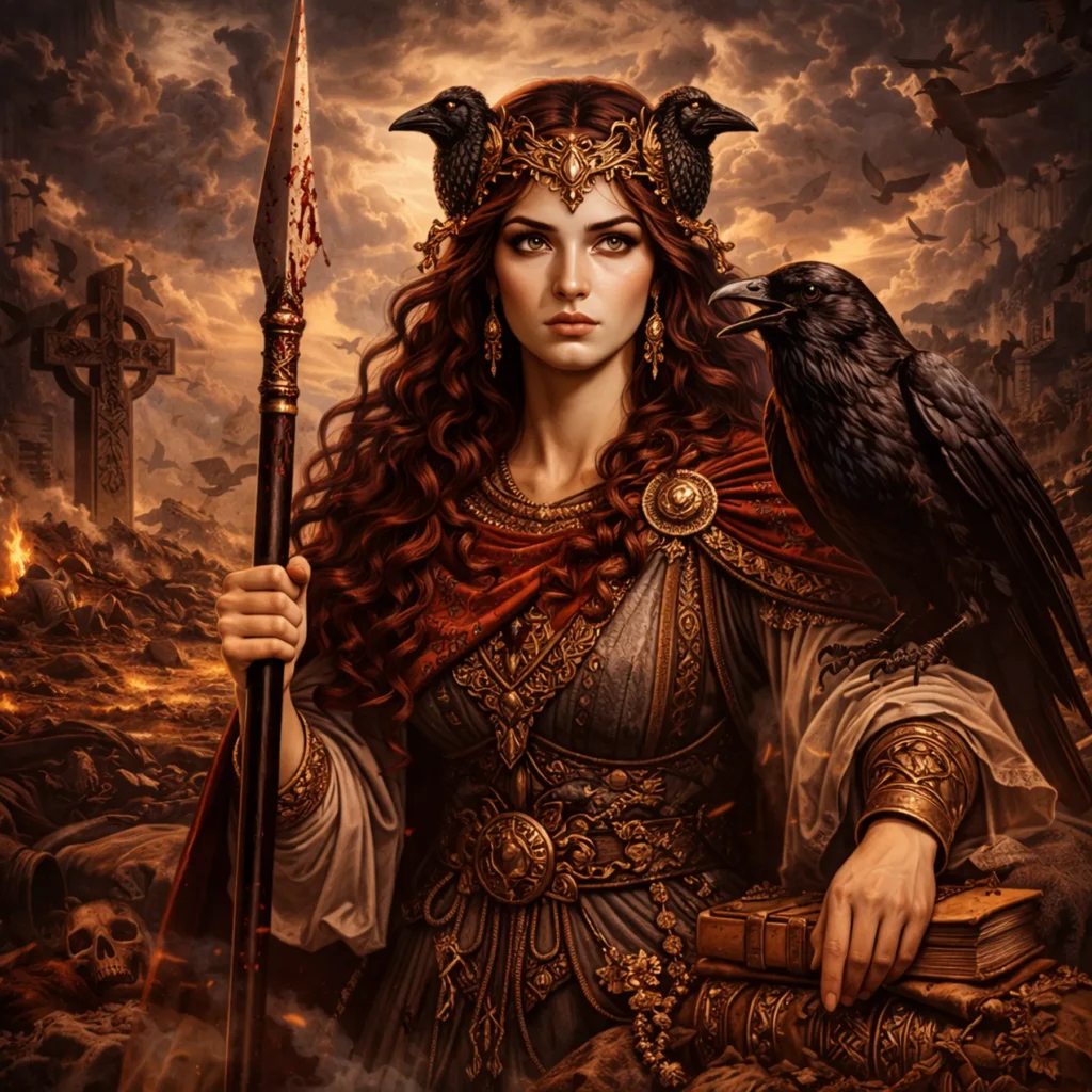 Morrígan encarna la conciencia del conflicto antes, durante y después de que ocurra. No es solo guerra (Marte), ni destrucción (Torre): es presencia que sabe que el enfrentamiento va a suceder y se mueve dentro de él. Su energía no es impulsiva, es lúcida. Puede anticipar la caída, anunciarla o influir en el resultado. No necesariamente lucha directamente: sobrevuela, observa y activa. También tiene un matiz de destino: cuando aparece, el conflicto ya está en marcha aunque aún no sea visible. No lo crea, pero lo revela y lo empuja a manifestarse.
