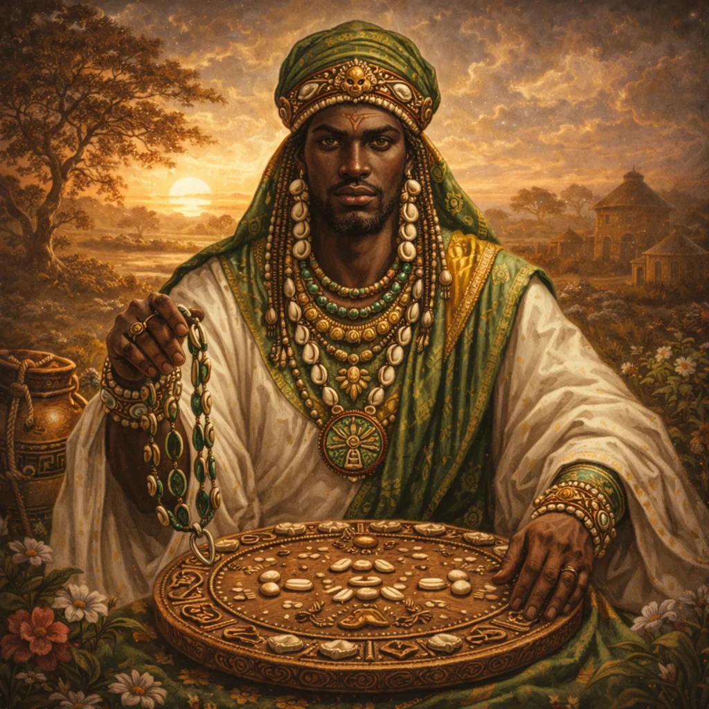 Orunmila actúa como lector del sistema y del destino. Su función es: interpretar, anticipar, revelar patrones, orientar decisiones.